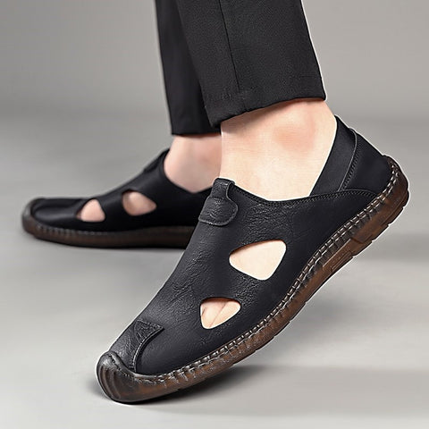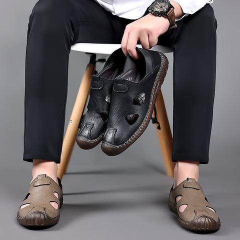 - 1* Hohle atmungsaktive Herrensandalen aus echtem Leder
