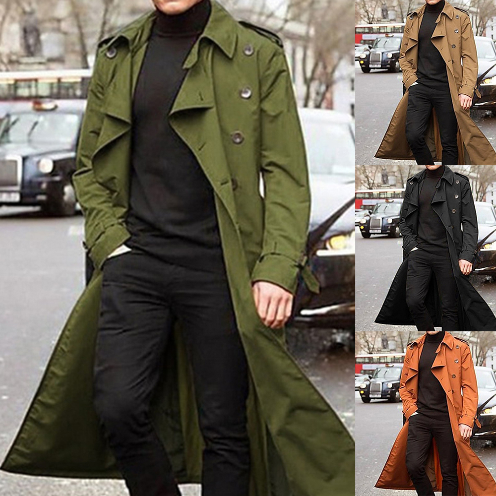 - 1*Lässiger doppelreihiger langer Trenchcoat mit Revers für Herren
