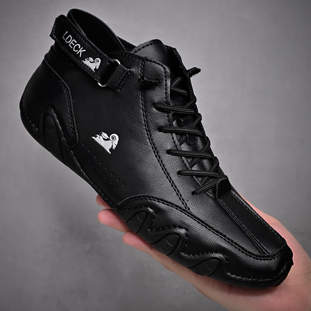 - Wasserdicht und atmungsaktiv: Schuhtechnologie mit wasserdichtem leder, das die Luft durchlässt und das Eindringen von Wasserdampf verhindert und somit ein stabiles und trockenes Umfeld schafft, in dem sich Ihre Füße wohl fühlen.